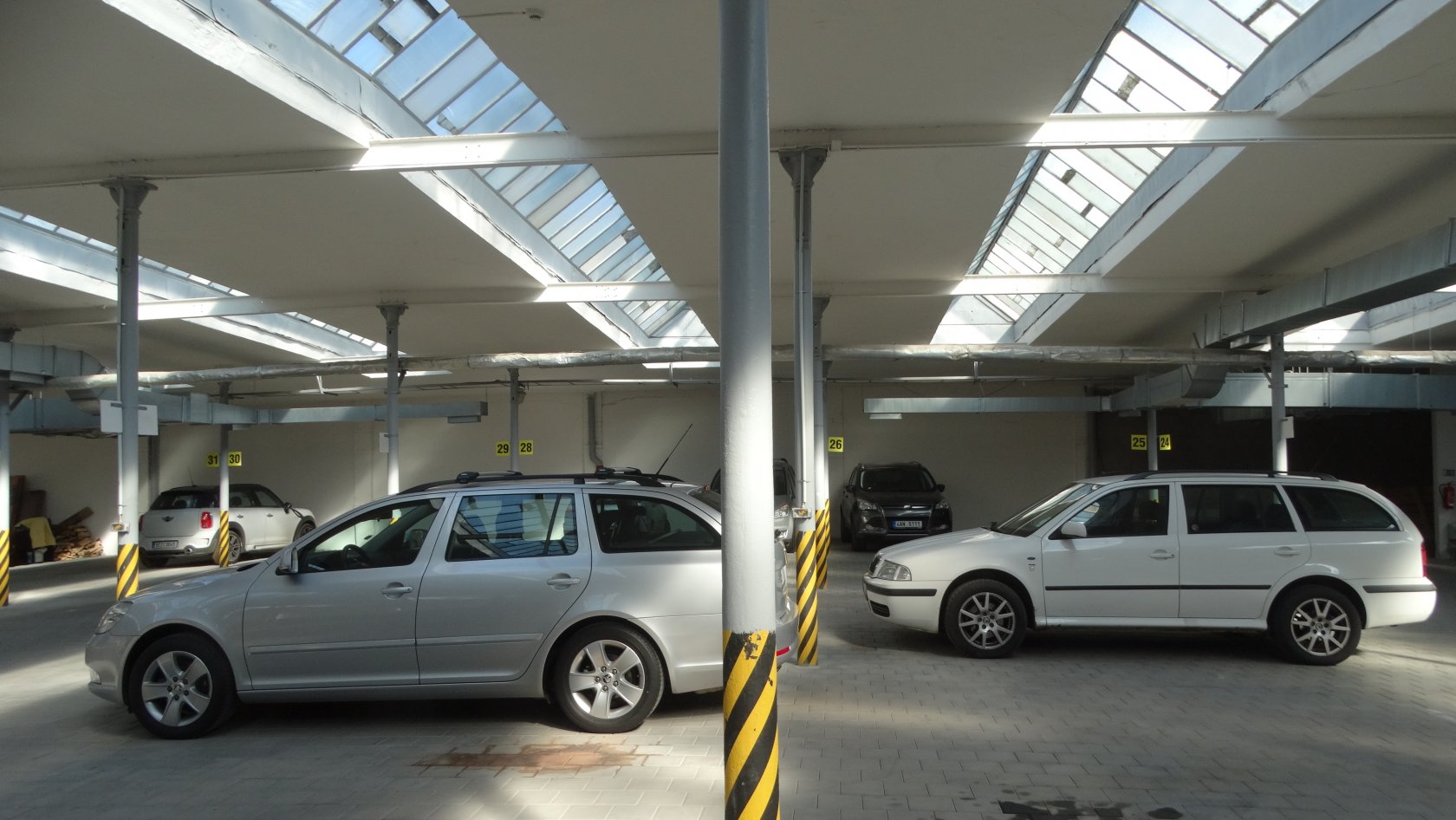 Nabízíme k pronájmu krytá parkovací místa v garážové hale se společným vjezdem.